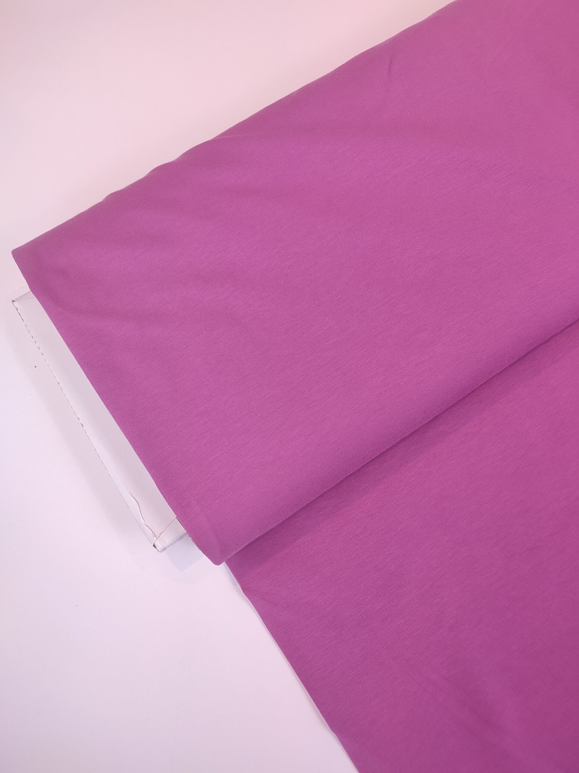 Mooie, uni jersey in dahlia roze kleur. Perfect voor het maken van T-shirts, jurken, sous-pulls, …